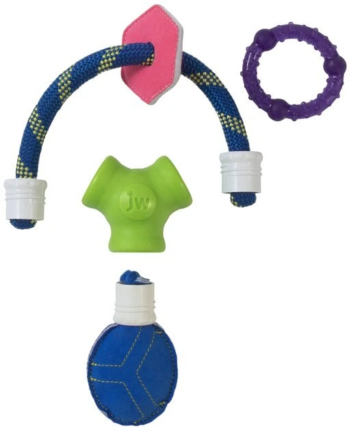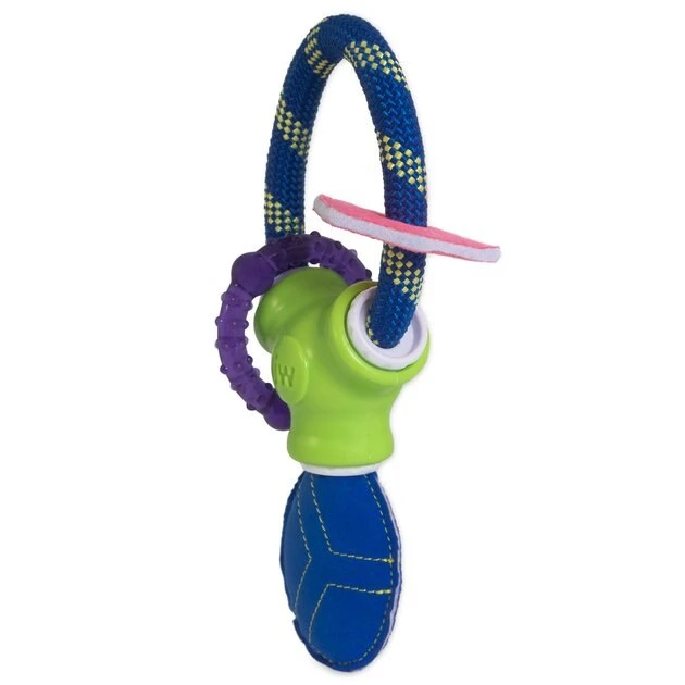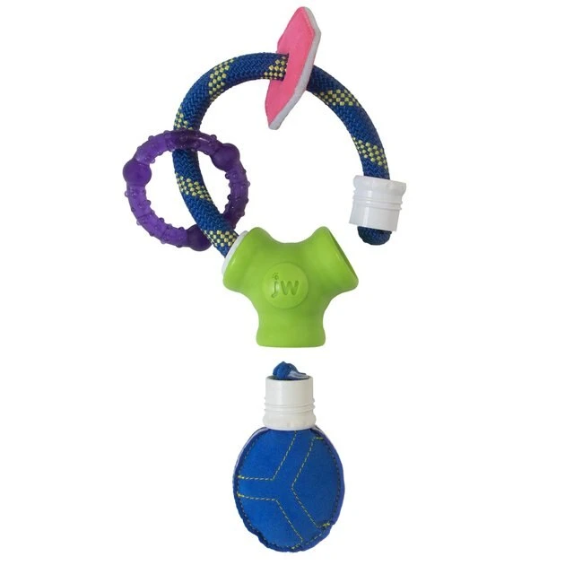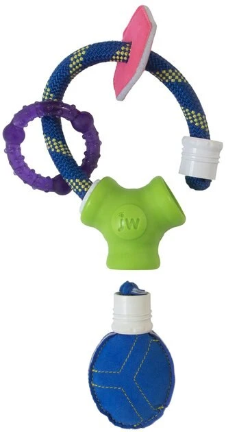 Got a teething pup in the house? Help soothe his poor aching teeth while giving him multisensory enrichment with the JW Puppy Connects Soft-ee Dog Toy! The faux suede pouch gives your curious puppy a variety of fun sounds as he plays, while the durable yet comfortable TPR teething ring soothes his teeth during playtime. The comfortable materials give your puppy a sense of security as he begins to explore the big world around him while also engaging his senses. Not only does this toy help with grumpy teethers, but it also gives rowdy puppies essential physical and mental enrichment with its chewing action and soft suede sounds!