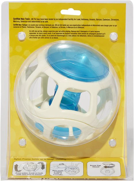 The Rockin Treat Ball is a modern ball that rocks, rolls & slides while dispensing treats. This rugged toy has a tough nylon frame with creatively styled openings that make it easy to pick up and carry