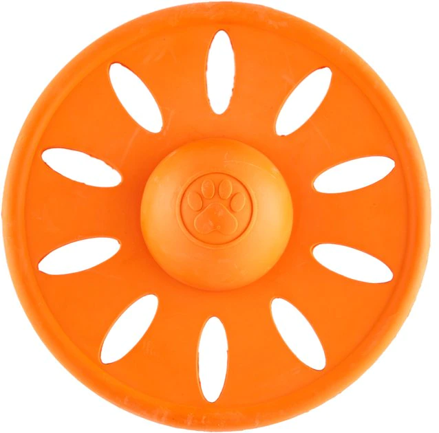 • Strong and safe natural rubber squeaking, flying disk dog toy