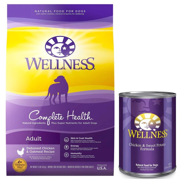 Your BFF shouldn’t have to settle for subpar meals! Get him the Wellness Complete Health Adult Deboned Chicken & Oatmeal Recipe Dry Food + Chicken & Sweet Potato Formula Canned Dog Food bundle for next-level nourishment and pup-approved flavors. Both of these recipes are free of meat by-products, fillers and artificial preservatives. The combo contains a slew of beneficial ingredients that work to support your dog’s immune system, energy levels, gut, coat and skin. To top it off, the wet food features an irresistibly meaty texture that will win over any canine companion.